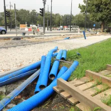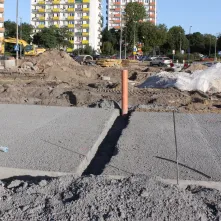 Na pl. Niepodległości trwa budowa peronów tramwajowych, a na północnej jezdni, po stronie Cinema City, powstaje koryto i wzmacniane jest jego podłoże. Pomarańczowe rury, które wystają z ziemi, to część odwodnienia torowiska. Przez cały czas prowadzone są również prace przy budowie kanalizacji, sygnalizacji świetlnej i oświetlenia ulicznego, a w ul. Kraszewskiego przekładany jest wodociąg.