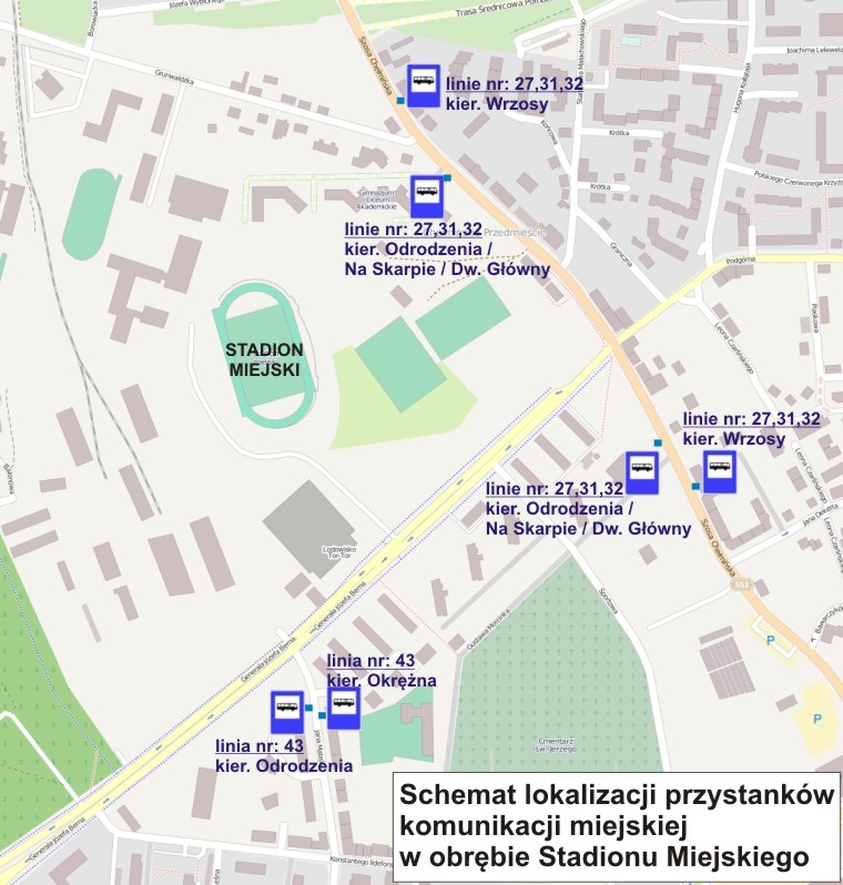 Dodatkowa linia nr 43 obejmie trasę od ul. Odrodzenia, przez Czerwoną Drogę, ul. Kraszewskiego, Matejki, Bema, Broniewskiego, Reja, Gagarina do pętli „Okrężna”.