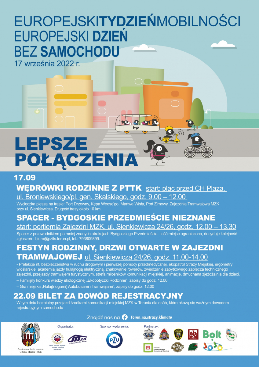 Partnerzy: Komenda Miejska Policji, Komenda Miejska Państwowa Straż Pożarna, Straż Miejska w Toruniu, AZS UMK, PTTK OM w Toruniu, Toruński Klub Miłośników Komunikacji Miejskiej, Bolt, Bike Cafe, Polski Klub Ekologiczny, Jojo Animacje.