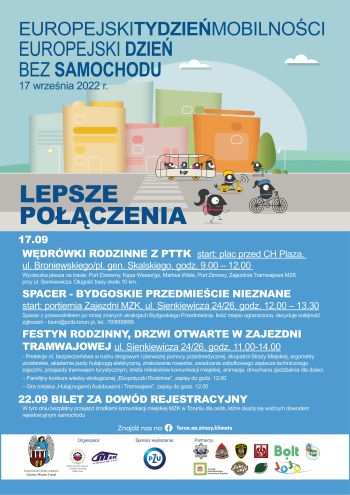 Wydarzenie organizowane przez Urząd Miasta Torunia, Polskie Zrzeszenie Inżynierów i Techników Sanitarnych Oddział Toruń oraz Miejski Zakład Komunikacji w Toruniu odbędzie się w ramach przypadającego w dniach 16-22 września 2022 r. Europejskiego Tygodnia Mobilności (dawniej: Europejski Tydzień Zrównoważonego Transportu). Jego celem jest promocja transportu publicznego, proekologicznych idei transportu i zmniejszenia zanieczyszczeń powietrza. Tegoroczne hasło ETM brzmi: „Lepsze połączenia”, co oznacza lepiej skomunikowanych mieszkańców oraz lepiej skomunikowane miejsca. Zwieńczeniem tygodnia jest Dzień bez Samochodu. Krajowym koordynatorem akcji jest Ministerstwo Infrastruktury. Drzwi Otwarte w Zajezdni Tramwajowej wpisują się również w tym roku w Europejskie Dni Dziedzictwa, odbywające się pod hasłem „Połączeni dziedzictwem”.