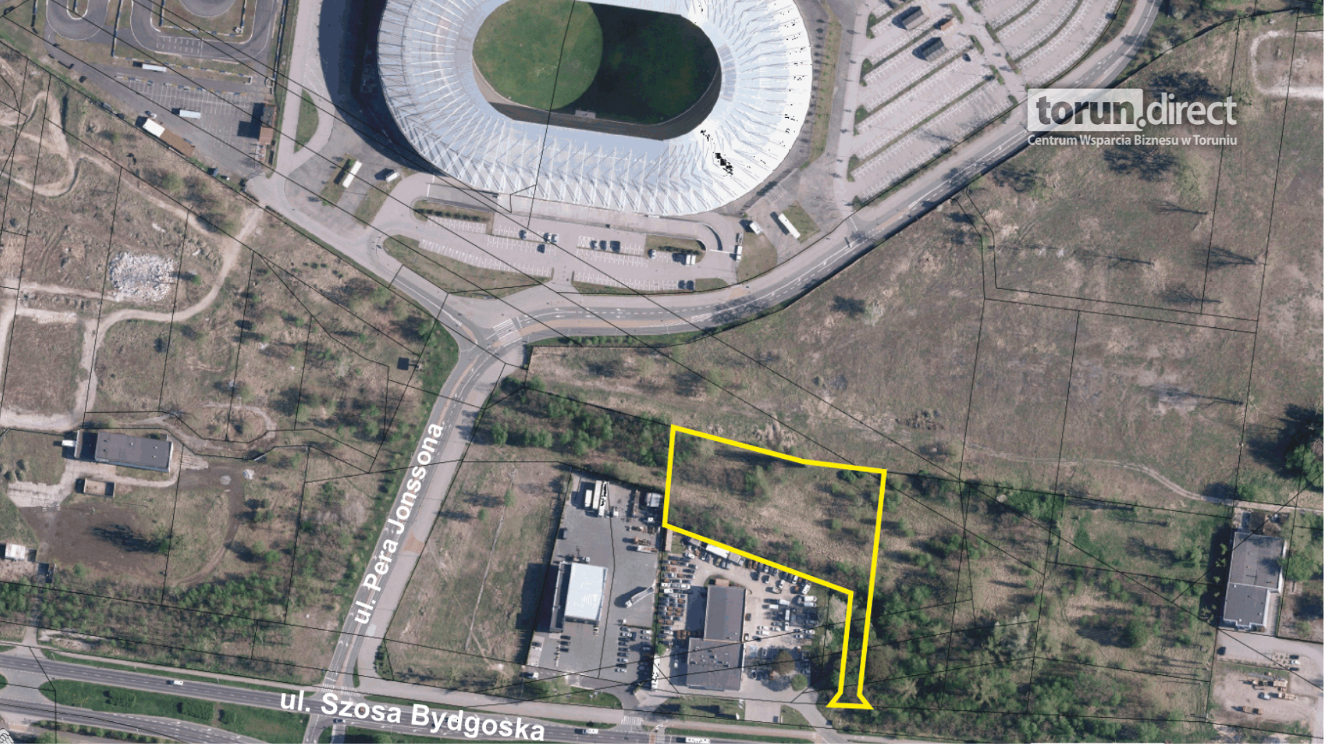 Działka inwestycyjna przy Motoarenie na sprzedaż. Teren przy Szosie Bydgoskiej 76 - 80 znajduje się w bezpośrednim sąsiedztwie toruńskiego stadionu żużlowego. Przetarg odbędzie się 8 października 2024 r. Cena wywoławcza to 2 400 000 zł.