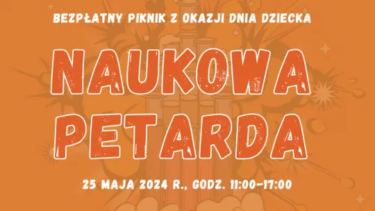 25 maja 2024 r. Centrum Nowoczesności Młyn Wiedzy zaprasza małych i dużych odkrywców na bezpłatny piknik z okazji Dnia Dziecka - "Naukowa Petarda".