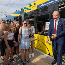 Po drodze na festyn tramwaje pojechały paradą przez nową pętlę, która powstała przy ul. Heweliusza, zaś na przystanku przy ul. Grasera nową linię poświęcił biskup Andrzej Suski.