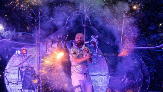 - W finale ostatniego dnia festiwalu zobaczymy Solarsów w wykonaniu Fundacji Sztukmistrze. To opowieść o dwójcie kosmitów, którzy marzyli o wakacjach na Neptunie, ale zamiast tego wylądowali na Ziemi. Jak poradzą sobie z nieznaną planetą i jej mieszkańcami? „Solarsi” to kosmiczna przygoda dla całej rodziny!