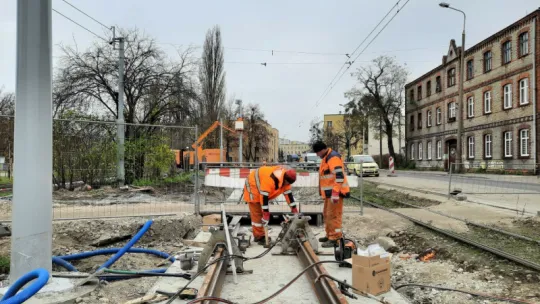 Prace przy modernizacji torowiska tramwajowego w ciągu ul. Warneńczyka od pl. Chrapka do ul. Kościuszki idą w dobrym tempie. Na całym wschodnim odcinku, od strony basenu, ułożono już szyny.