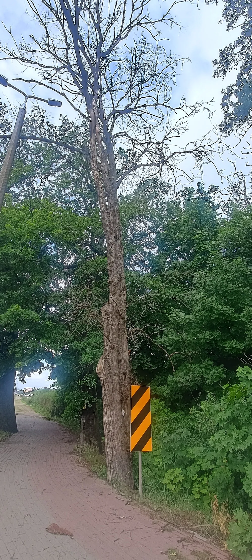 - zakres prac: próchniejące końce pnia, nie rokuje przeżycia, stanowi zagrożenie dla osób, mienia i ruchu drogowego