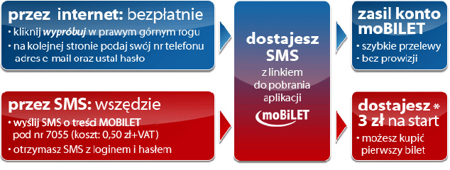 - To prosta operacja. Najpierw należy zarejestrować się w systemie moBILET przez internet lub wysłać sms-a o treści MOBILET. Koszt to 50gr + VAT. Otrzymamy dwa sms-y zwrotne: pierwszy z loginem i hasłem, drugi z linkiem do pobrania darmowej aplikacji moBILET. Następnie należy zainstalować w telefonie komórkowym aplikację i zasilić elektroniczną portmonetkę – wyjaśnia dyrektor firmy moBILET sp. z o.o., Andrzej Ankudo–Jankowski. - Dokonując zakupu należy uruchomić aplikację w telefonie komórkowym i wybrać odpowiedni bilet z wyświetlanej w telefonie listy. Zakupiony bilet widoczny jest na ekranie telefonu i zawiera m.in. datę, godzinę, nr linii, nr boczny wozu, itd. W trakcie kontroli pasażer okazuje kontrolerowi bilet wyświetlany na ekranie telefonu komórkowego.
