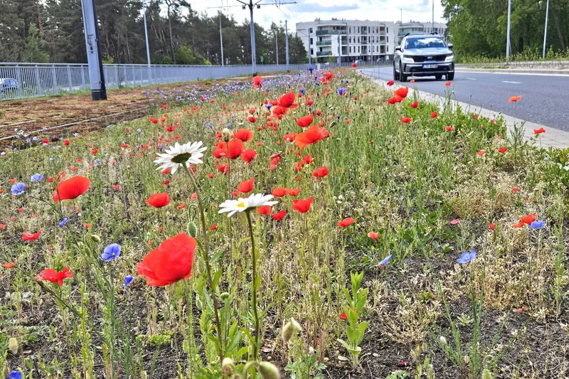Malowniczo prezentują się kwietne łąki wzdłuż trasy tramwajowej biegnącej w ciągu ul. Watzenrodego. Mają walor nie tylko estetyczny, ale – co bardzo ważne – ekologiczny.