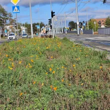 Mimo że w kalendarzu od tygodnia króluje listopad, zielone torowiska, które powstały w ramach projektu „Poprawa funkcjonowania komunikacji miejskiej w Toruniu – BiT-City II” niezmiennie cieszą oko. Co ciekawe, gdzieniegdzie nadal kwitną utworzone wzdłuż nowej trasy tramwajowej kwietne łąki.