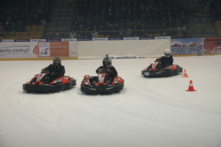 W przerwie kibice mieli okazaję zobaczyc wyścigi gokartów