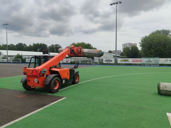 Boisko do hokeja na trawie doczekało się nowej nawierzchni, montowane jest także energooszczędne oświetlenie oraz wyższe ogrodzenie.
