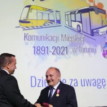 Jubileusz był również okazją do wręczenia odznaczeń państwowych i branżowych. Zastępca prezydenta Zbigniew Fiderewicz wraz z przewodniczącym Rady Miasta Torunia Marcinem Czyżniewskim wręczyli Medal Thorunium (najwyższe wyróżnienie przyznawane przez Prezydenta Miasta Torunia) wieloletniej pracownicy Miejskiego Zakładu Komunikacji w Toruniu Edycie Urtnowskiej. Pani Edyta pracuje w MZK od 1968 r. do chwili obecnej. Początkowo była ona zatrudniona jako referent ekonomiczny ds. zaopatrzenia w administracji zakładu, ale już po pół roku objęła stanowisko Kierownika Sekcji Gospodarczej. Zajmowała się nie tylko administracją w pełnym tego słowa znaczeniu, ale również, w szerokim zakresie, sprawami bytowymi załogi - umundurowaniem, ośrodkami wczasowymi, organizowaniem wypoczynku dla dzieci i młodzieży, a także organizacją pracy pracowników. Do przejścia na emeryturę w lutym 1998 r. była Kierownikiem Działu Usług Bytowych i Administracyjnych. W marcu 1998 r. wróciła do pracy na stanowisko Samodzielnego Referenta ds. Archiwalnych i na tym stanowisku pracuje do dnia dzisiejszego.