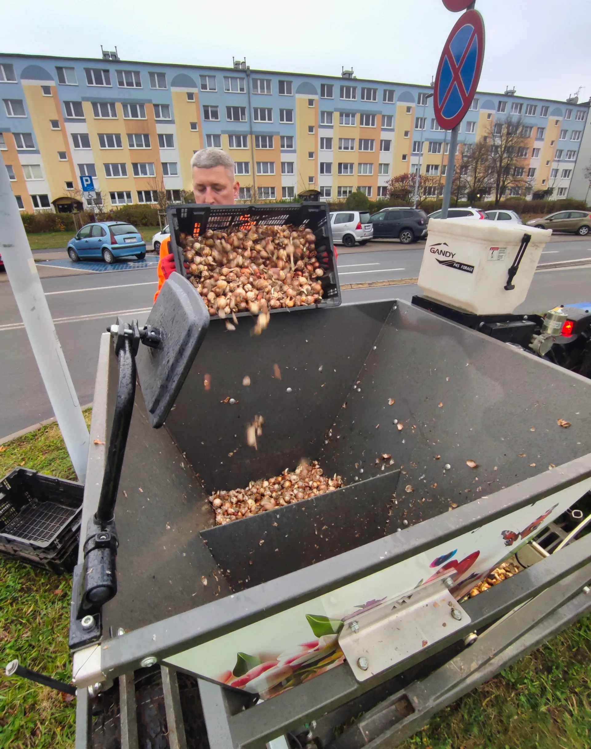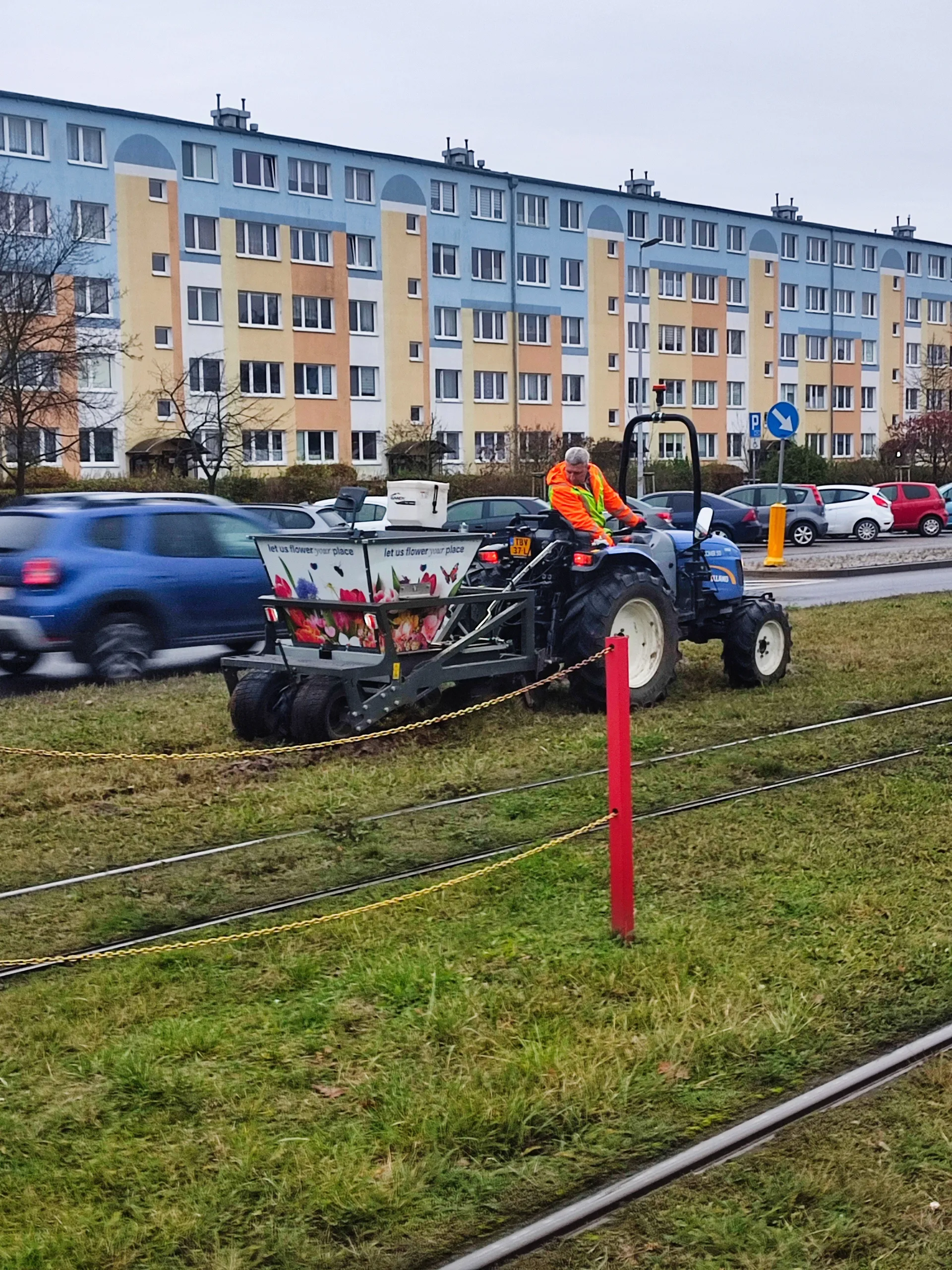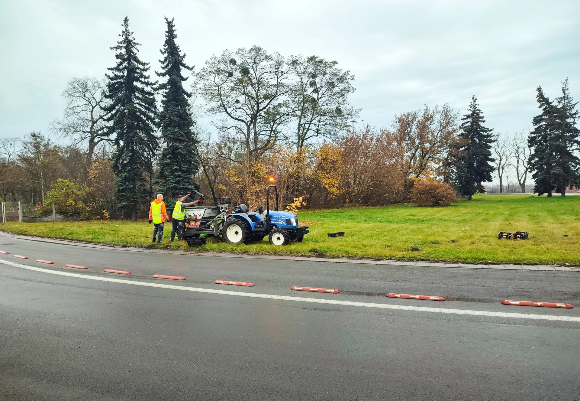 Mieszankę kompozycyjną roślin cebulowych miksu narcyzów, żonkili i tulipanów posadzono metodą mechaniczną w trawniki. Metoda ta pozwala na uzyskanie zagęszczenia 80 szt. cebul na m kw.
