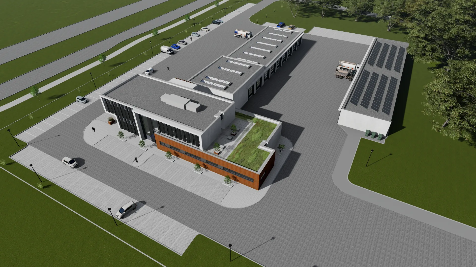 Obiekt będzie się składał z części administracyjno – biurowo – socjalnej, garażowej oraz warsztatowej. Kubatura budynku wynosi 11 tys.m3. W ramach inwestycji wykonany zostanie wewnętrzny układ komunikacyjny (drogi wewnętrzne, place manewrowe, parkingi a także stanowiska do mycia pojazdów i tankowania wody), podziemna infrastruktura techniczna oraz oświetlenie.