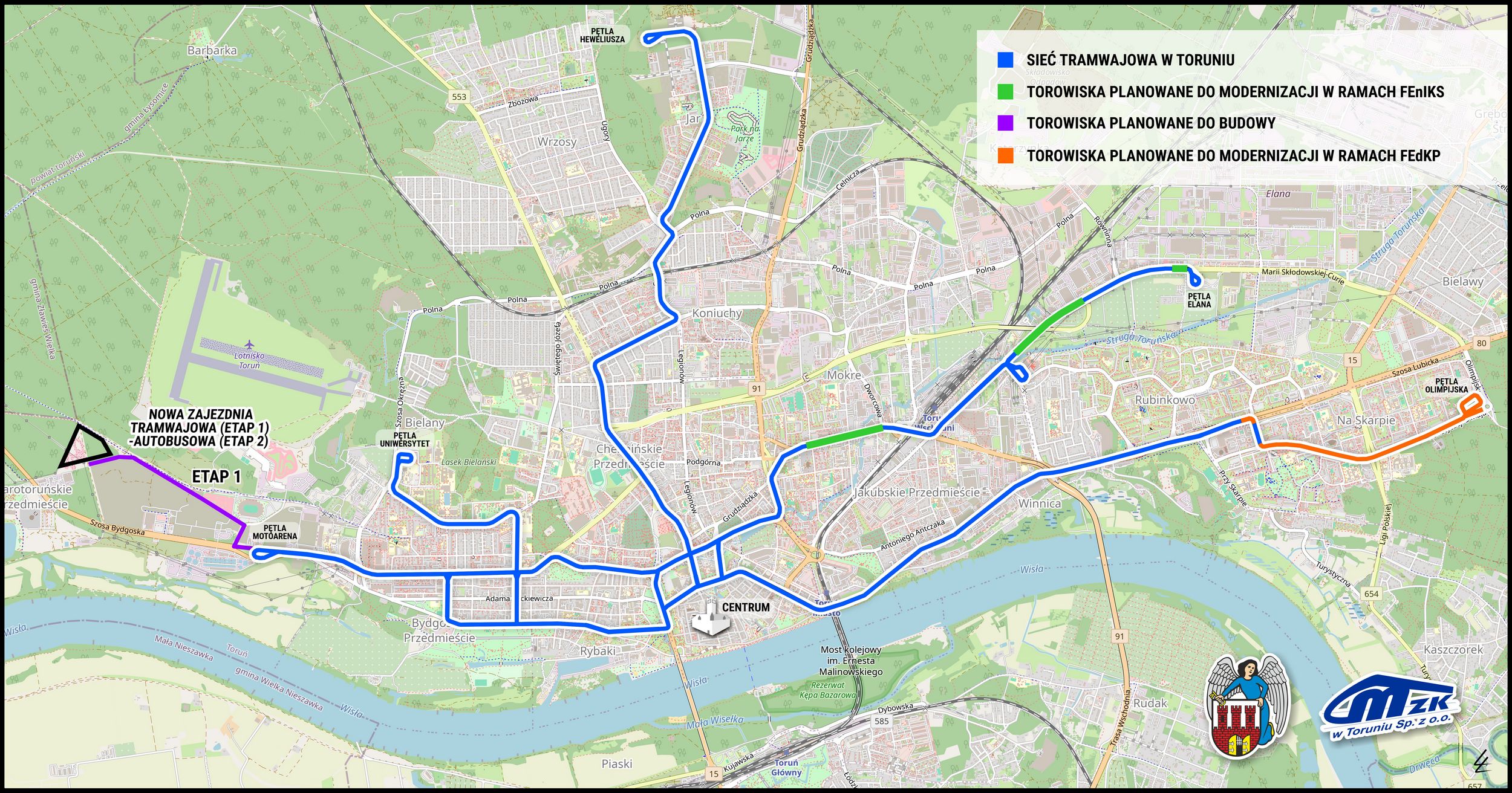 Zarówno budowa nowej zajezdni tramwajowej, jak i nowej linii są planowane do realizacji w ramach projektu "Rozwój ekologicznej komunikacji tramwajowej w Toruniu", z dofinansowaniem z programu Funduszy Europejskich na Infrastrukturę, Klimat, Środowisko.