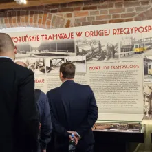 - Dziś spotykamy się z dwóch powodów. Pierwszy to otwarcie wystawy poświęconej historii komunikacji miejskiej w Toruniu. Serdecznie zapraszam do jej obejrzenia w Muzeum Historii Torunia. Będzie można na niej znaleźć mnóstwo fotografii i eksponaty, które zapewne w niejednym oku wycisną łezkę wzruszenia. Drugi powód, niemniej ważny, to otwarcie posiedzenia komisji Taboru Tramwajowego Izby Gospodarczej Komunikacji Miejskiej – dodaje prezes Miejskiego Zakładu Komunikacji w Toruniu Zbigniew Wyszogrodzki. - IGKM to organizacja skupiająca przedsiębiorstwa zajmujące się komunikacją miejską, przewoźników, producentów taboru i urządzeń, osprzętu, oprogramowania. W ramach Izby działa kilka komisji branżowych. Ta, którą właśnie gościmy w Toruniu, zajmuje się taborem tramwajowym. Nie bez powodu spotykamy się właśnie w naszym mieście, gdyż mamy się czym pochwalić. Budujemy nowe trasy tramwajowe, węzły przesiadkowe, zielone przystanki, modernizujemy torowiska, sukcesywnie wymieniamy tabor. Budowa nowej trasy tramwajowej na północ Torunia o ok. jedną czwartą wydłużyła długość linii tramwajowych w mieście i cieszy się dużym zainteresowaniem. Przed nami dalsze wyzwania: zakupy nowych, ekologicznych autobusów i tramwajów, modernizacje kolejnych odcinków torowisk i budowa nowej zajezdni tramwajowej. To wszystko miasto chce zrealizować przy wsparciu unijnym i do tego dążymy.