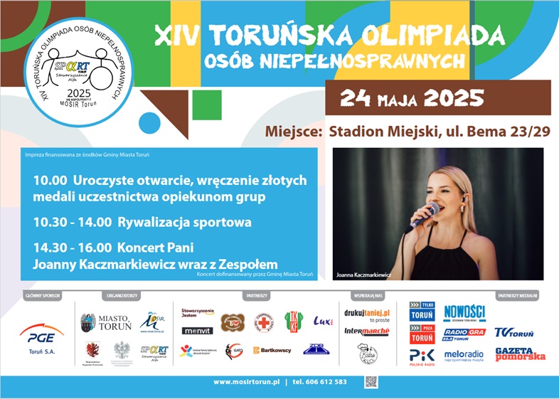 14:30 – 16:00 – zakończenie olimpiady, występ artystyczny Joanny Kaczmarkiewicz wraz z zespołem