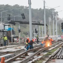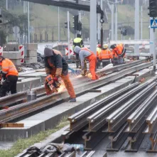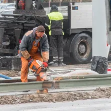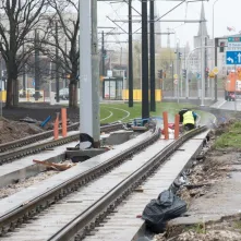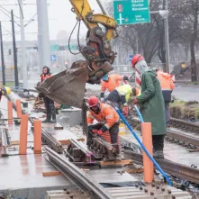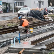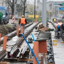 - Obecnie pogoda nam sprzyja. Położyliśmy już płytę podtorową na całym odcinku, gotowe jest już także odwodnienie i działa nowe oświetlenie – wylicza Maciej Gozdowski, kierownik robót drogowo-torowych z firmy Balzola. – Teraz koncentrujemy się na układaniu szyn, od strony pl. Hoffmanna układamy obrzeża i humus pod zielone torowisko. Ponadto na skrzyżowaniu z ul. Matejki układamy płyty betonowe.