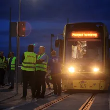 Obecnie trwają jeszcze roboty wykończeniowe, porządkowe oraz zieleniarskie. Odbywają się także przeglądy branżowe, które zakończą się odbiorem inwestycji. Jednym z elementów procedury odbiorowej są przejazdy techniczne. Kilkanaście dni temu odbył się pierwszy z nich – na odcinku od pl. NOT do ul. Dekerta. Dziś wieczorem tramwaj po raz pierwszy pokonał cała trasę, w tym jedyny w Polsce przejazd drogowo-kolejowo-tramwajowy na ul. Legionów, gdzie nowa linia tramwajowa krzyżuje się z czynną linią kolejową.