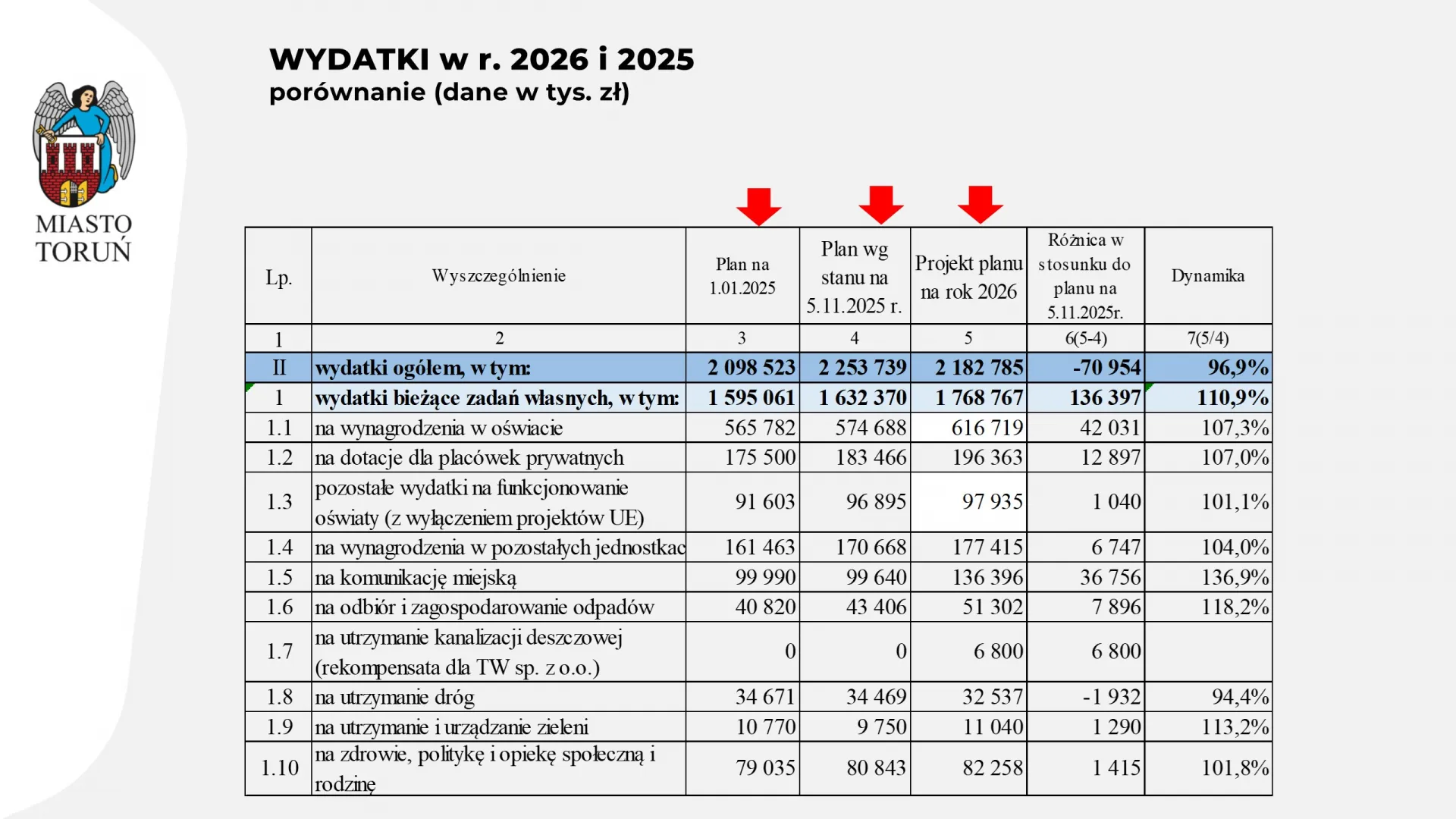 ZOBACZ: Projekty: Budżetu Miasta Torunia na rok 2026 oraz Wieloletniej Prognozy Finansowej Miasta Torunia na lata 2026-2055.