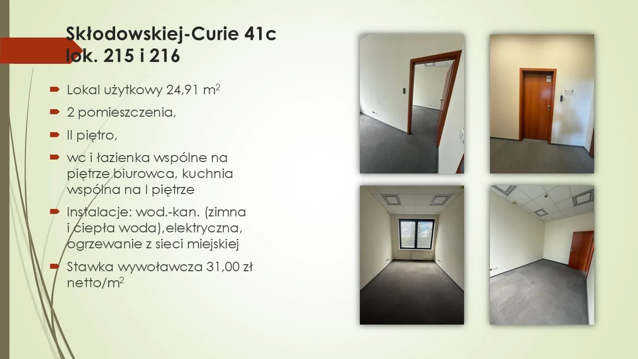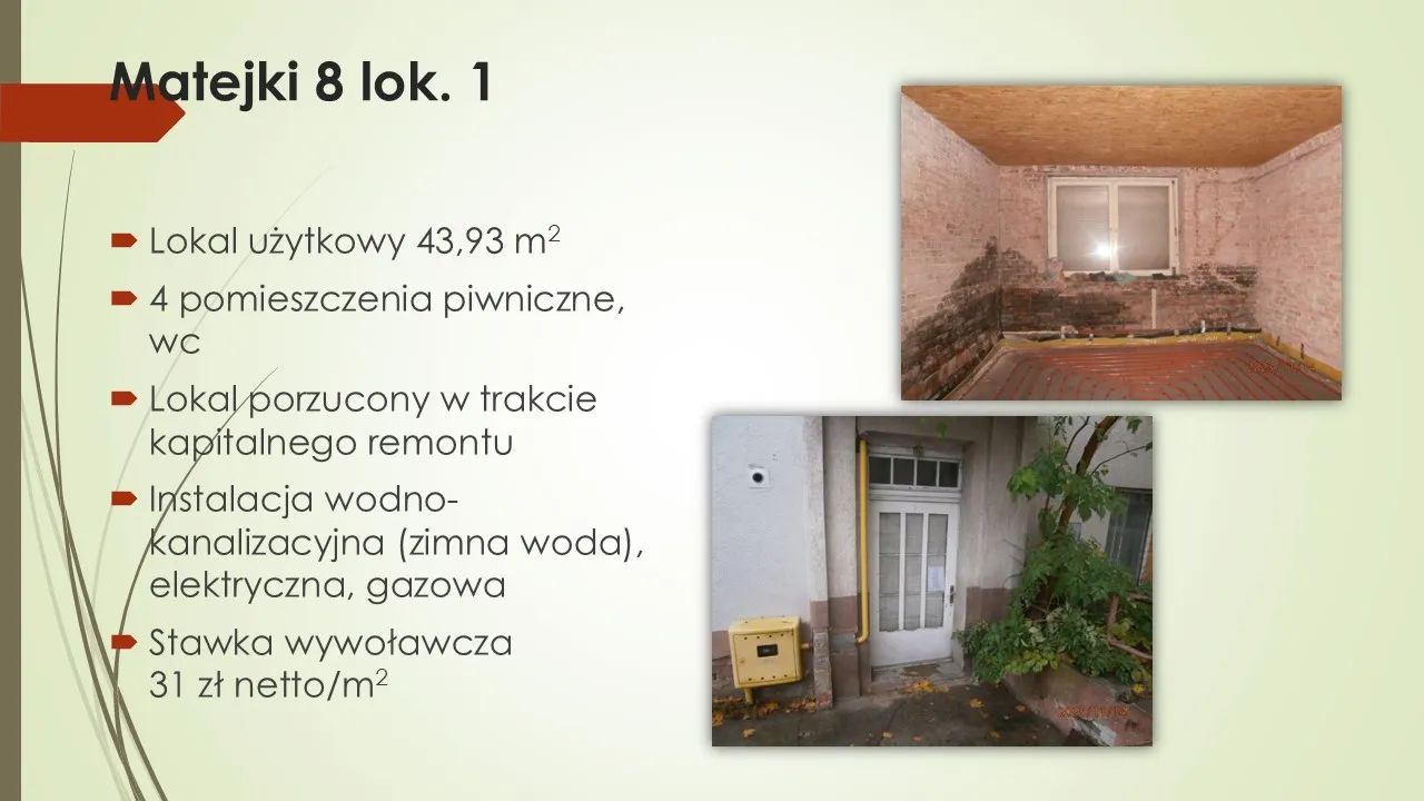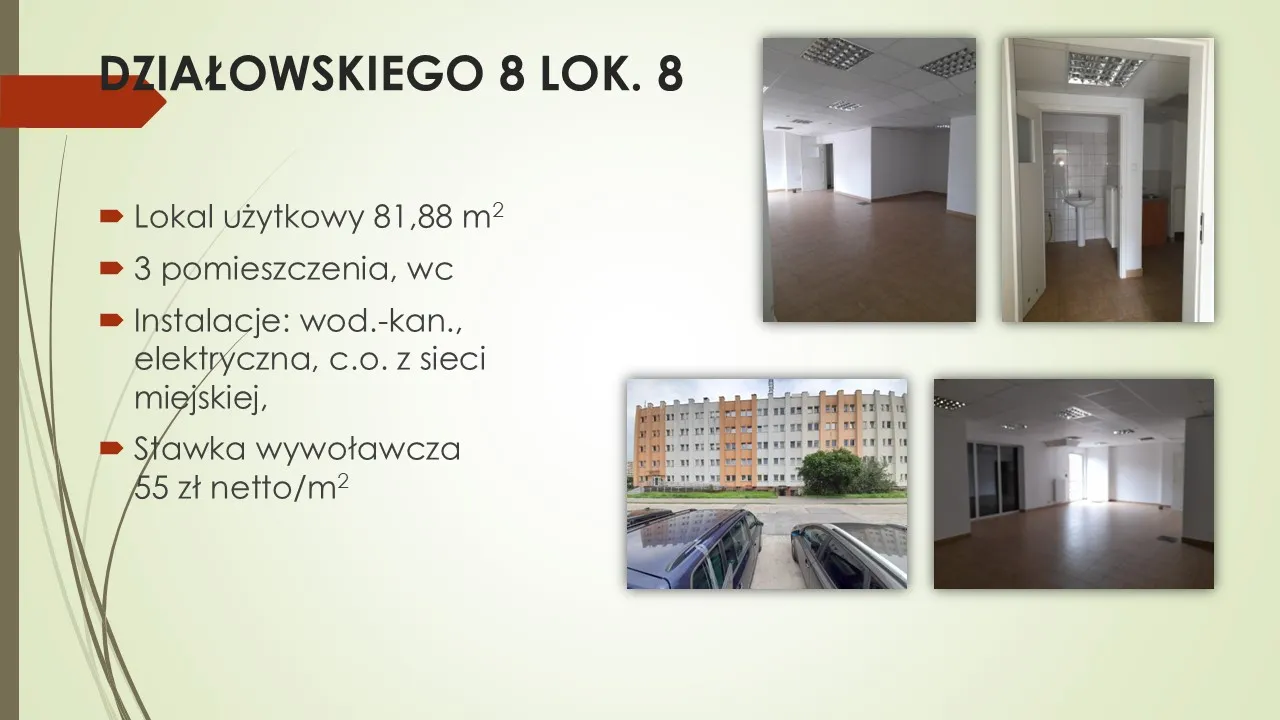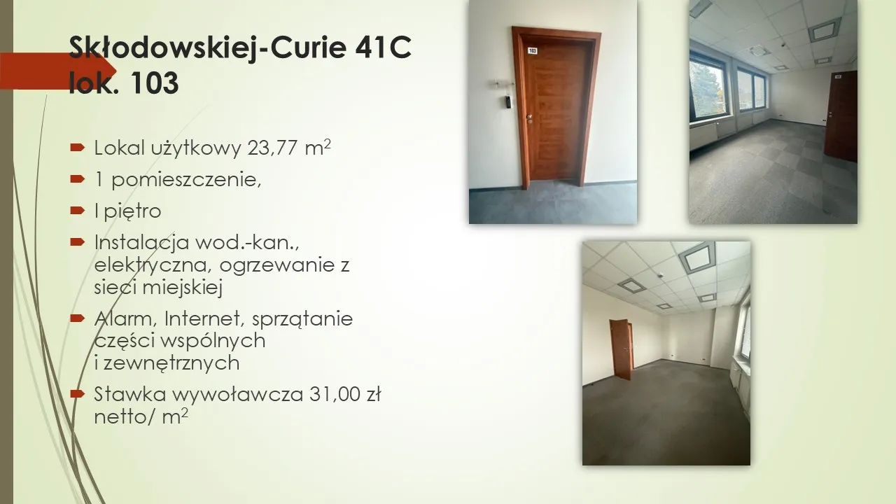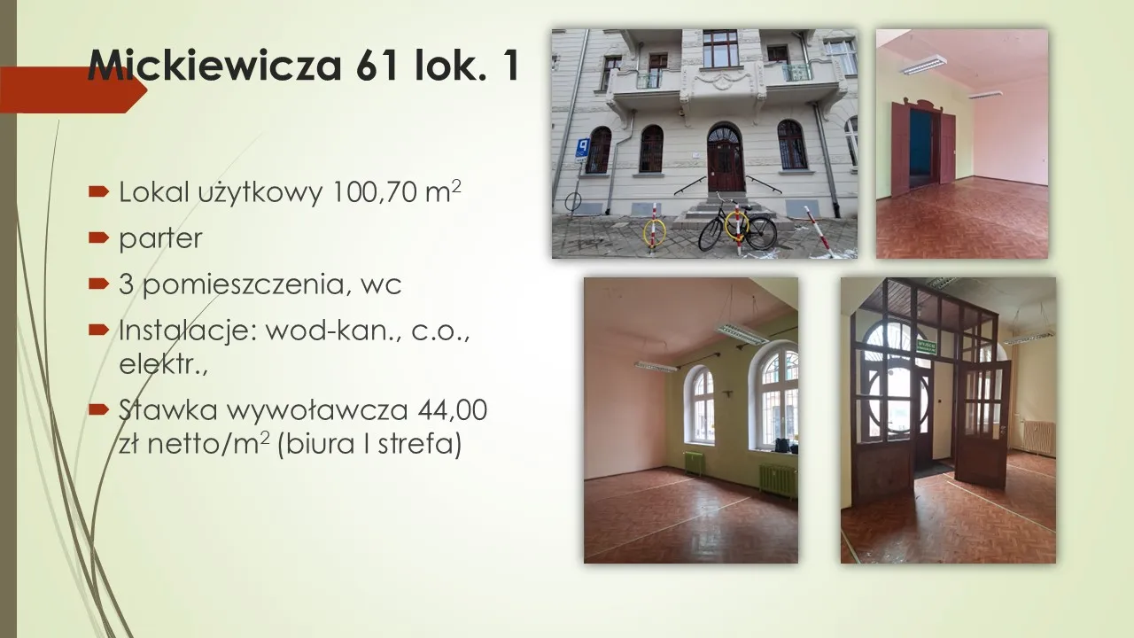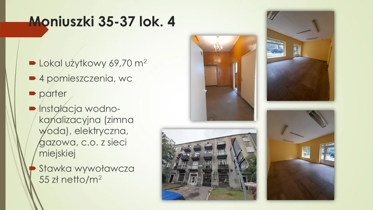 Postępowanie ma formę przetargu ustnego, podczas którego zainteresowani najemcy będą mogli licytować stawkę czynszu. Do wylicytowanej kwoty doliczony zostanie podatek VAT w wysokości 23 proc., a w przypadku lokali użytkowych także koszty eksploatacyjne oraz media rozliczane w cyklu miesięcznym.