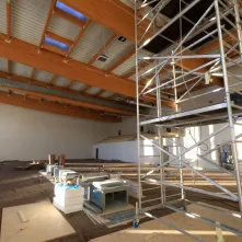 W ramach prac wykonane zostały instalacje sanitarne wewnętrzne: wodociągowa, kanalizacji sanitarnej i deszczowej, C.O., wentylacji mechanicznej, a także zewnętrzne: przyłącza wody, instalacji kanalizacji sanitarnej oraz kanalizacji deszczowej. W ramach instalacji elektrycznych i niskoprądowych pojawiła się m.in. fotowoltaika.