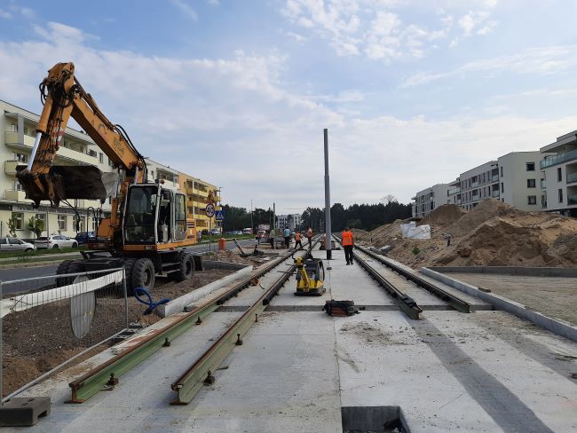 Prace na budowie nowej linii tramwajowej prowadzone są już prawie na wszystkich zaplanowanych odcinkach. Część torowiska jest już gotowa, powstają kolejne fragmenty i nowy układ drogowy. Do końca budowy pozostał jeszcze rok. Wtedy nową trasą ruszy pierwszy tramwaj.