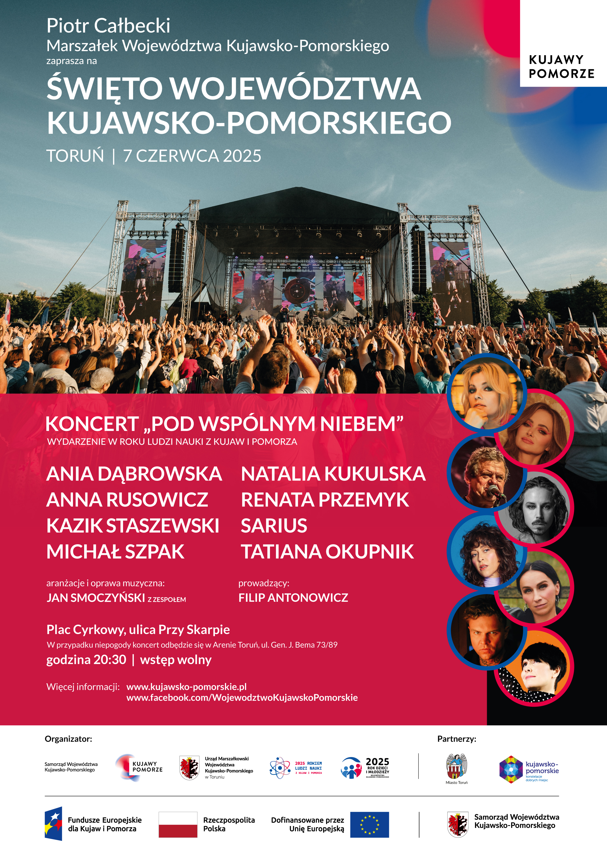 W Toruniu koncert odbędzie się w sobotę 7 czerwca 2025 r. na Placu Cyrkowym przy ul. Przy Skarpie – wstęp wolny.