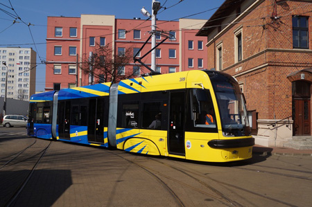 Już trzeci z sześciu trójczłonowych tramwajów typu swing dotarł do Torunia w Piątek 10 kwietnia 2015 r. Miasto kupiło nowoczesne tramwaje od bydgoskiej PESY.