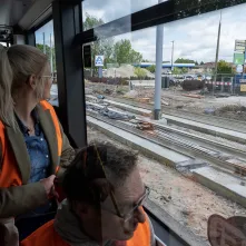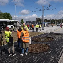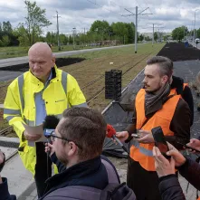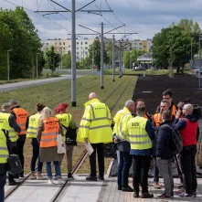Montują tory i siec trakcyjną, tworzą kwietne łąki i zielone torowiska, stawiają wiaty, które niedługo staną się zielonymi przystankami, budują jezdnie i chodniki, przygotowują się do budowy przejazdu drogowo-kolejowo-tramwajowego – wszystko to, i o wiele więcej dzieje się w Toruniu na budowie nowej linii tramwajowej. 16 maja 2023 roku inwestycję wizytował Prezydent Torunia Michał Zaleski.