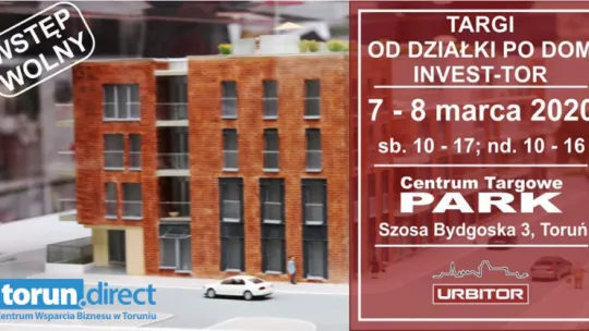 Już w weekend 7-8 marca 2020 r. XV Targi Budownictwa i Targi Mieszkaniowe „Od działki po dom” oraz Kujawsko-Pomorskie Targi Inwestycyjne „Invest-Tor”. To doskonała okazja, aby w jednym miejscu i czasie zapoznać się z ofertą deweloperów, instytucji finansowych czy dowiedzieć się wszystkiego na temat wyposażenia i budowy swojego wymarzonego domu lub siedziby firmy.