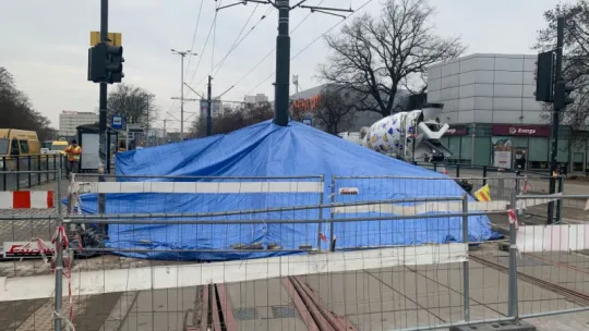 Specjalna, zadaszona konstrukcja stanęła na placu NOT. Wszystko po to, by pogoda nie pokrzyżowała szyków podczas prac przy budowie nowej linii tramwajowej.