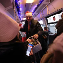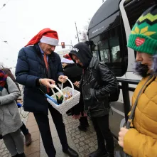 - Staramy się od lat, by komunikacja miejska w Toruniu się rozwijała. Modernizujemy torowiska, budujemy nową linię tramwajową, kupujemy nowe tramwaje i autobusy, także elektryczne. To wszystko sprzyja korzystaniu z komunikacji publicznej. A w tym szczególnym dniu, w Mikołajki, kiedy chyba każdy zagląda rano w buty, chcemy to szczególnie umilić. Stąd wspólne, radosne podróżowanie. Z upominkami, kolędami i najlepszymi życzeniami dla pasażerów i wszystkich torunian – mówi prezydent Torunia Michał Zaleski.