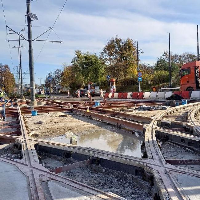 Na placu NOT układane są rozjazdy torowe, po których w razie potrzeby tramwaj będzie miał możliwość jazdy w każdej relacji. Trwają także przygotowania do kolejnych etapów wylewania płyty torowej, a na al. Solidarności montowana jest sieć trakcyjna.