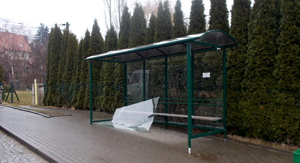 Poranny objazd i sprzątanie przystanków autobusowych zakończyło się niemiłą niespodzianką. Na trzech przystankach wandale powybijali szyby w wiatach. Ich naprawa jest dość kosztowna i niestety płacimy za nią wszyscy .