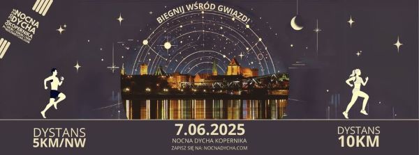 Nocny bieg na dystansie 10 km (start: spod Galerii Copernicus) oraz 5 km i nordic walking (start: most im. J. Piłsudskiego, spod kampingu Tramp). Unikalna trasa prowadząca przez malownicze ulice Torunia, Bulwar Filadelfijski, most J. Piłsudskiego, Dolinę Marzeń, Ogród Muzyków, zakątki Bydgoskiego Przedmieścia. Dla każdego, kto ukończy swój bieg, pamiątkowy medal.