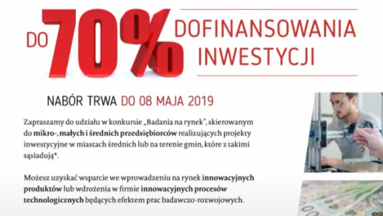 W imieniu Ministerstwa Inwestycji i Rozwoju oraz Polskiej Agencji Rozwoju Przedsiębiorczości zapraszamy do udziału w konkursie „Badania na rynek”. To program skierowany do mikro-, małych i średnich przedsiębiorców realizujących projekty inwestycyjne w miastach średnich lub na terenie gmin, które z takimi sąsiadują.