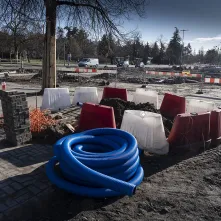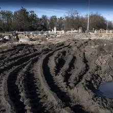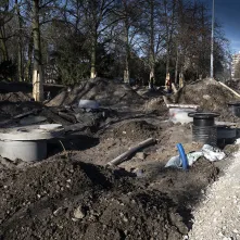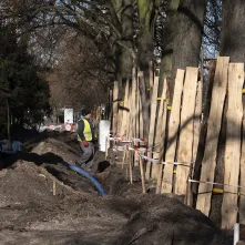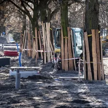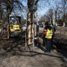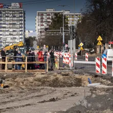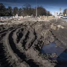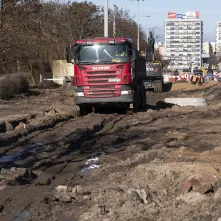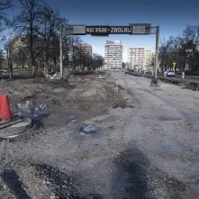 Na al. św. Jana Pawła II i w najbliższej okolicy sporo się dzieje. Powstaje podbudowa pod jezdnię i torowisko oraz infrastruktura podziemna. Aby ułatwić poruszanie się pieszych oraz rowerzystów, na wysokości ul. Mickiewicza ustawiono drewnianą kładkę.
