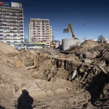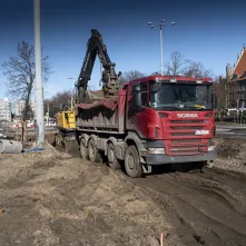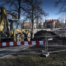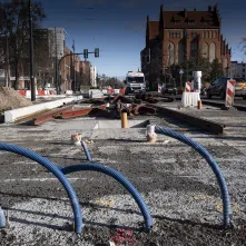 Drogowcy małymi krokami wchodzą już także na pl. Niepodległości, gdzie wykonano już odwierty pod fundamenty słupów trakcyjnych.