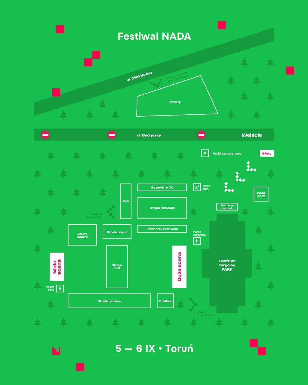 Wjazd na festiwalowy parking będzie możliwy wyłącznie od strony ul. Adama Mickiewicza. Ruchem będą kierowali przedstawiciele organizatora. Prosimy o stosowanie się do poleceń służb.