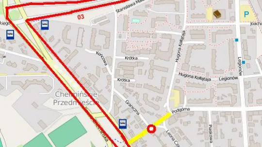 Autobusy w obu kierunkach kursować będą objazdem Trasą Średnicową Północną zamiast ul. Podgórną.