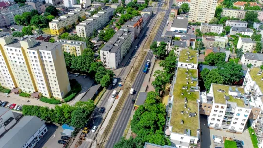 Na jezdni północnej (od strony Osiedla Sztuk Pięknych), na odcinku od ul. Wyspiańskiego do wys. ul. Kochanowskiego, ruch drogowy zostanie zawężony do jednego pasa.