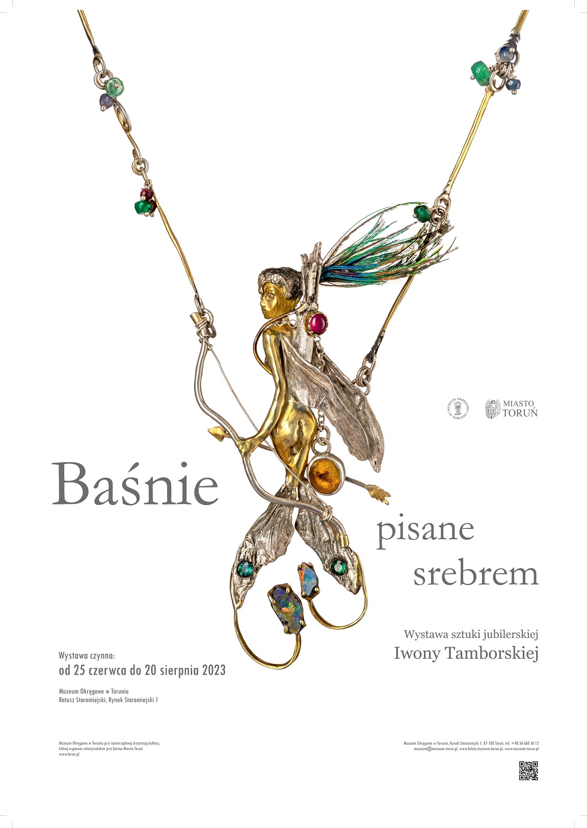Muzeum Okręgowe w Toruniu zaprasza 24 czerwca 2023 r. o godzinie 17.00 do Ratusza Staromiejskiego na wernisaż wystawy pt. „Baśnie pisane srebrem. Wystawa sztuki jubilerskiej Iwony Tamborskiej”.