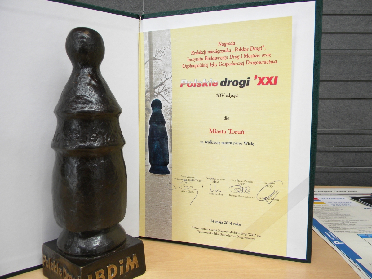 Statuetki oraz dyplomy wręczone zostały podczas uroczystości w dniu 14 maja 2014 r. podczas otwarcia targów budownictwa drogowego w Kielcach. W imieniu Gminy Miasta Toruń nagrodę odebrała Barbara Tyrankiewicz, kierownik Biura Realizacji Projektu Mostowego.