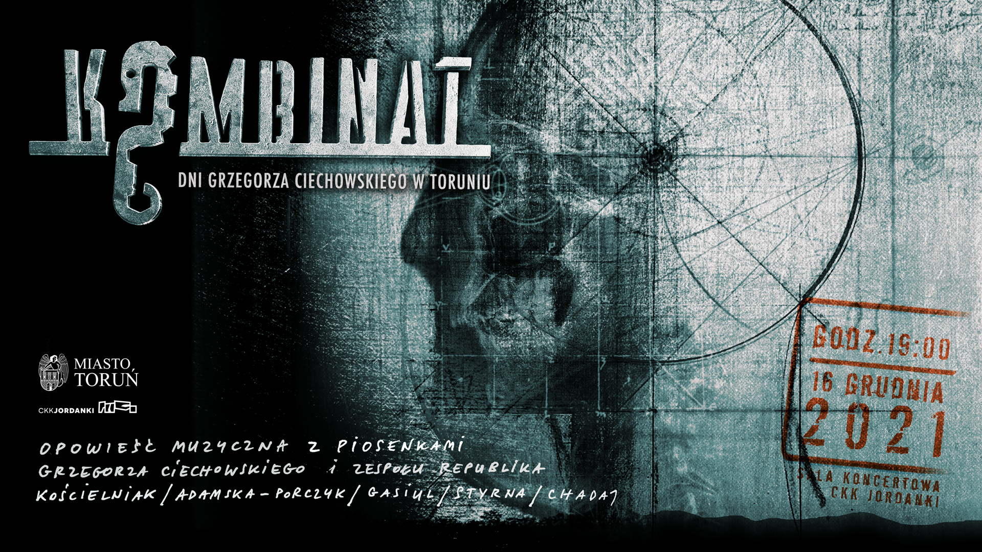 W 2021 roku przypada 20. rocznica śmierci Grzegorza Ciechowskiego. Pomimo upływu lat teksty i muzyka Grzegorza Ciechowskiego towarzyszą nam cały czas, niosąc uniwersalne i ponadczasowe prawdy. W ramach tegorocznych Dni Grzegorza Ciechowskiego w Toruniu zapraszamy na Kombinat – spektakl Teatru Muzycznego w Poznaniu inspirowany twórczością Obywatela GC i zespołu Republika.