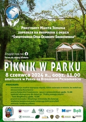 Zapraszamy na ekopiknik z okazji Światowego Dnia Ochrony Środowiska, który odbędzie się 8 czerwca 2024 r. przy amfiteatrze w Parku na Bydgoskim Przedmieściu.