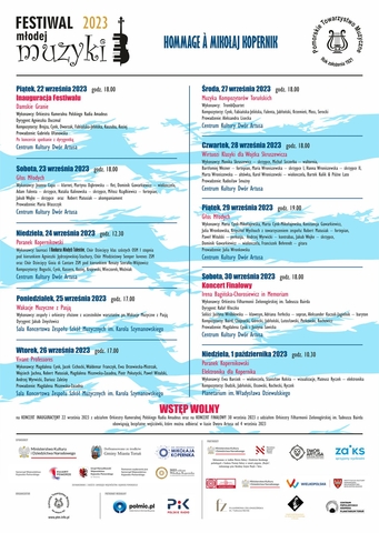 Trzecia edycja Festiwalu Młodej Muzyki – Hommage a Mikołaj Kopernik będzie ponownie promocją polskiej muzyki współczesnej skupiającą się na prezentacji młodych twórców i artystów związanych z regionem kujawsko-pomorskim oraz na pielęgnowaniu pamięci o toruńskich twórcach kultury.