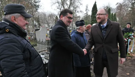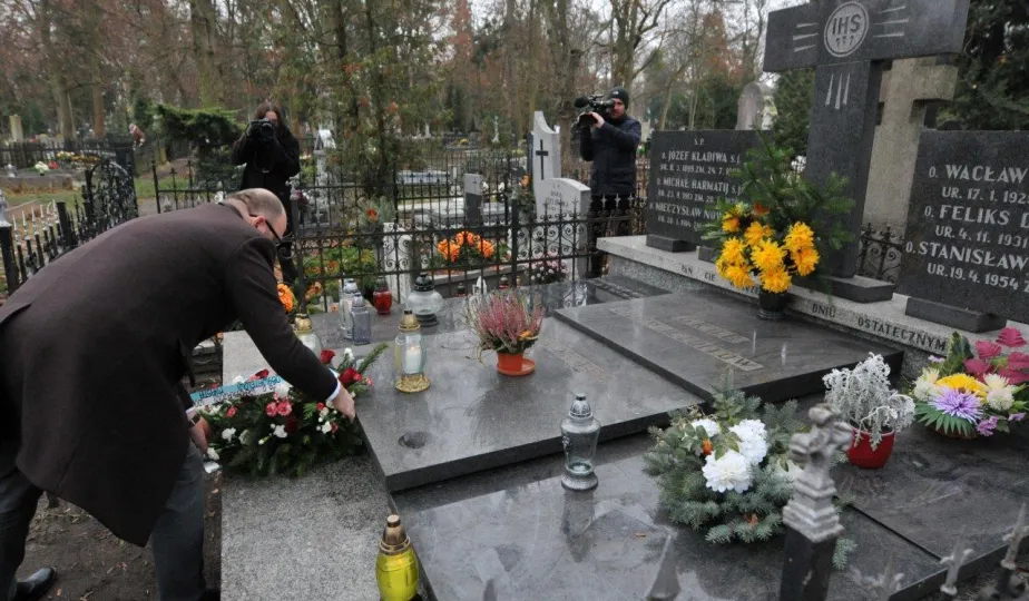 29 listopada 2022 r. minęła 1. rocznica śmierci zasłużonego jezuity, o. Władysława Wołoszyna, Honorowego Obywatela Torunia. Z tej okazji przedstawiciele miasta - radna Danuta Zając i zastępca prezydenta Paweł Gulewski - złożyli kwiaty na jego grobie na cmentarzu św. Jerzego. Ojciec Wołoszyn jest pochowany w kwaterze zbiorowej toruńskich jezuitów przy alei głównej. Fot. Małgorzata Litwin