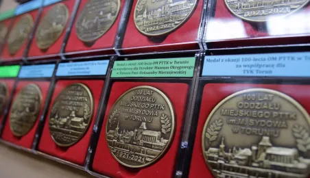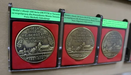 Oddział Miejski Polskiego Towarzystwa Turystyczno-Krajoznawczego im. Mariana Sydowa w Toruniu obchodzi 100-lecie działalności. Uroczystości jubileuszowe odbyły się 31 sierpnia 2021 r. w Sali Mieszczańskiej Ratusza Staromiejskiego. Była to okazja do wręczenia odznaczeń państwowych, wojewódzkich i miejskich oraz nagród zasłużonym działaczom PTTK. Prezydent Michał Zaleski wręczył oddziałowi medal Powrotu Torunia do wolnej Polski wraz z dyplomem oraz nagrody przeznaczone dla działaczy szczególnie zaangażowanych na rzecz krzewienia turystyki kwalifikowanej i promocji obiektów historycznych Torunia. Fot. Adam Zakrzewski
