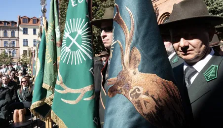 16 września 2023 roku na Rynku Nowomiejskim odbyła się uroczystość z okazji 100-lecie Polskiego Związku Łowieckiego. / fot. Wojtek Szabelski